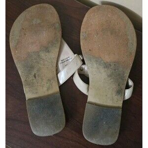 Guess T-Strap Thong Sandals Flip Flops Flats Beige Cream Tan Logos Womens Size 7