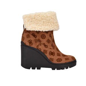 Look cute and stay warm this winter in the Guess Tabloid wedge bootie. This ankle bootie comes with logo detailing at the upper for a classic look, while the faux shearling collar offers a plush, cozy feel.
