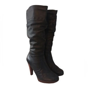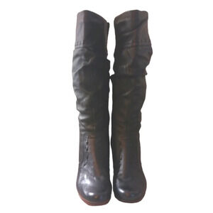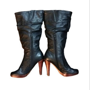Guess Tall Black Leather Boots Knee High Heeled Boots