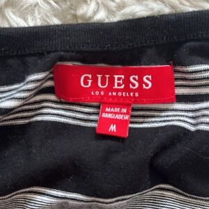 Guess Brand tank was worn once, and shrunk a little in the wash. Otherwise in excellent condition. Black and white striped, this is a great piece to wear with almost any pair of shorts whether poolside, on the way to the beach or out for a drink.