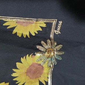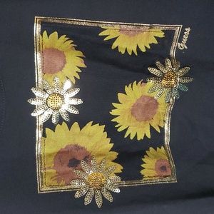 NWT Guess black Tank Top with sunflowers and sequin embellishments.