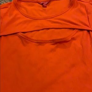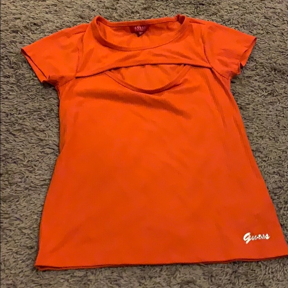 Guess Top Orange Guess Tee with a cute little sexy opening:) Very cute with jeans or skirt or a suit:) EUC Size: Small