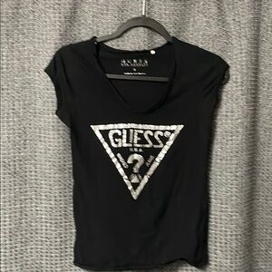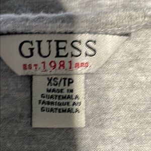 Guess Gray tank tops XS and S Black Top. The black top prominently features the signature Guess triangle logo, making it a standout piece in any casual ensemble. Perfect for layering or wearing solo, these tops are a versatile addition to your wardrobe.