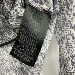 Guess Top Gray Snake Print Sheer Long Sleeve V Neck Ruffle