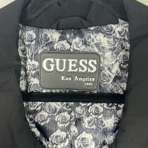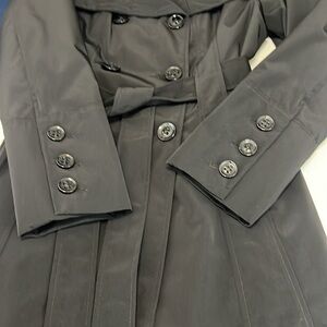 Guess Trench Coat Black Double Breasted Belted Polyester EUC S claz L