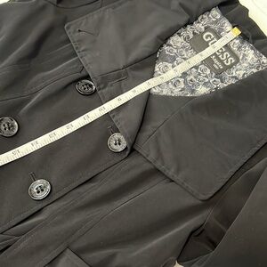 Guess Trench Coat Black Double Breasted Belted Polyester EUC S claz L