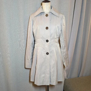 Guess Trench Coat Jacket Long Buttons Medium Gray Silver