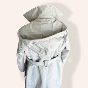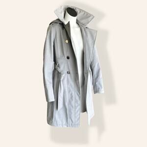 Guess Trench Double-Breasted Hooded Coat Size Medium in Heather Gray.
