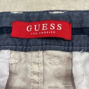 Vibrant white shorts with bold red tropical floral print from GUESS. Lightweight, breathable, and perfect for summer style. Flat front with classic fit.