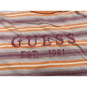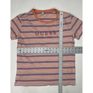 Guess T-shirt Women XS Striped Embroidered Logo Multicolor Short Sleeve