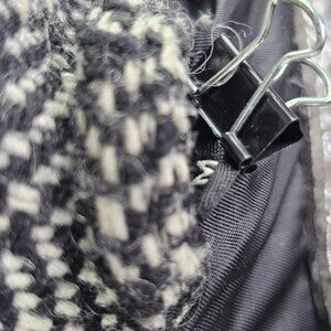 The elegant black and white tweed pattern adds a chic, textured look, while the structured lapels and button closure create a flattering, polished fit.