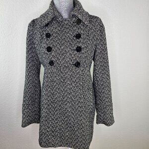 Guess Women's Classic Black and White Double Breasted Pea Coat