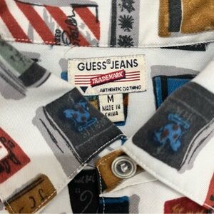 Guess USA All Over Print Long Sleeve Button Down Mens Medium
