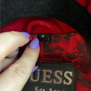 VINTAGE Guess Los Angeles 1981 Red wool blend Hooded Military Jacket. Size medium.