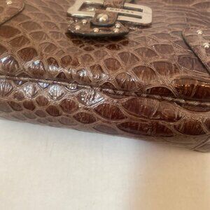 Elevate your style with this Guess Y2K faux brown crocodile hobo shoulder bag. Featuring a chic design and spacious interior, it's perfect for everyday use. The rich brown color adds a touch of elegance to any outfit. Bag is in good condition.