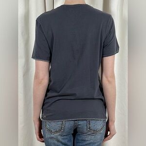 Guess V-Neck Tee ❧ In blue. Small logo graphic at the hem. Single stitch details. Great pre loved vintage condition.