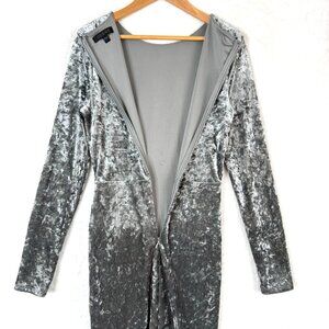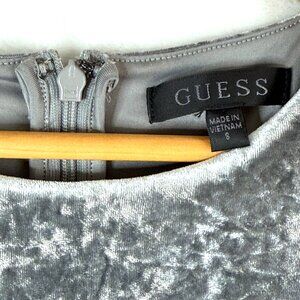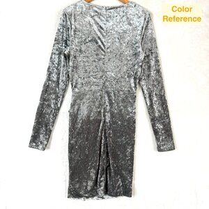 Guess Velvet Metallic Knotted Long Sleeve Bodycon Sheath Mini Dress Womens S Gray Silver