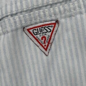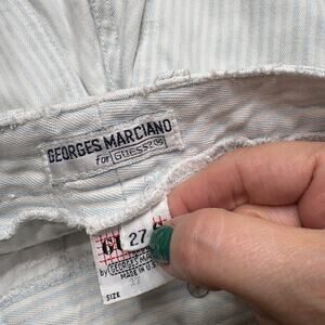 Guess Vintage 25x27 Striped Jeans 80s High Waist Zip Ankle Tapered Blue White