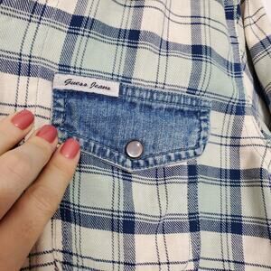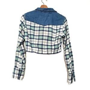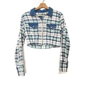 Guess | Vintage 90s Plaid Denim Crop Zip Top