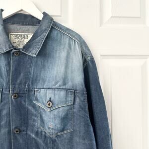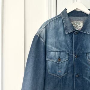 Guess Vintage Blue Vintage Button Denim White Wash Whiskering Trucker Jacket XXL