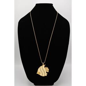 Guess Vintage Fish Pendant Necklace Rhinestone Crystal Gold Tone Chain 90s Bin4A