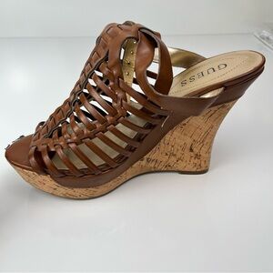 Guess Vintage Y2K Brown Wedge Heel Shoes – Size 8.5, Ankle Strap, 4" Heel