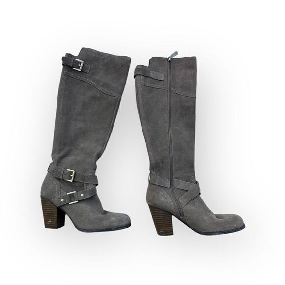 Guess WGYNN tall leather block heel side zip boots women’s size 6.5 tan/brown