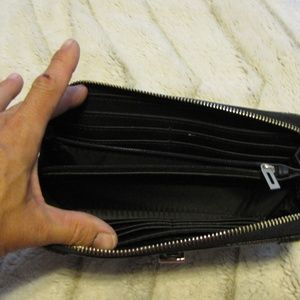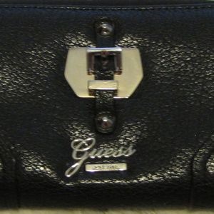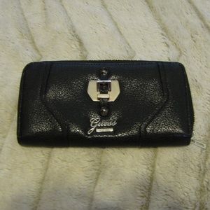 Guess Wallet Black with decorative Buckle and Zipper closure. 16 credit card slots, change, and bill areas. In amazing condition