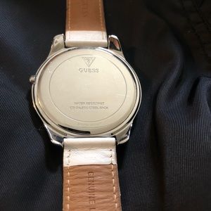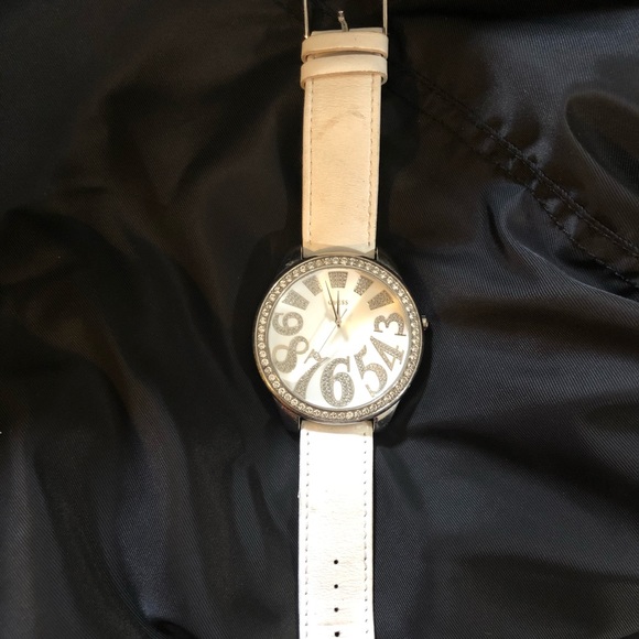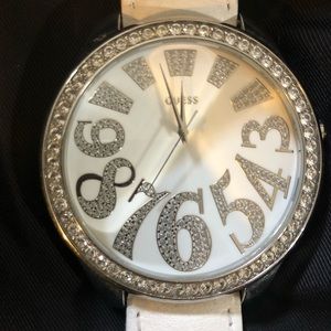 Guess large face watch with oversized numbers - white band- watch piece in excellent condition - white band is slightly dirty - watch needs new battery