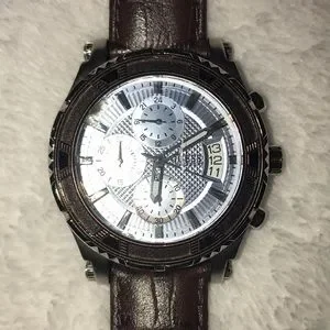 Guess watch for men. Band is not Guess, brand new band, band was replaced, because the one it came with was very dirty. Please note: the last picture shows small chip between 51-52.