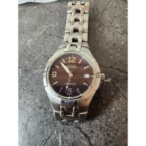 Guess Water Pro Watch Men Silver Tone Black Dial Date