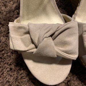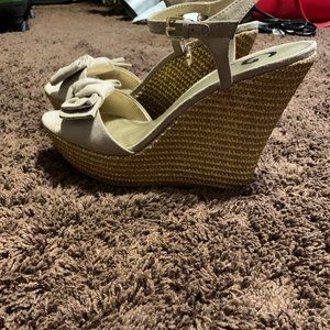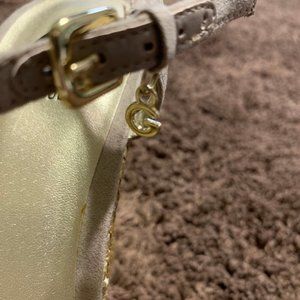 Cute Tan Guess Wedges Bows on the toes Dangling G on the ankles Brand new, never worn before! Size 9 1/2