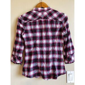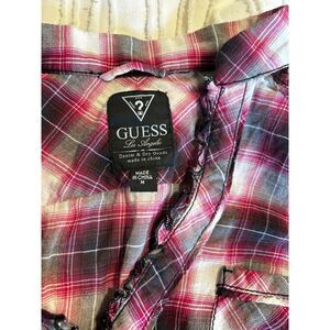 Guess Western Y2K Style Pink Black Plaid Women’s Ruffled Button Up Medium