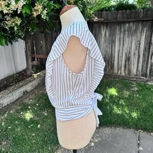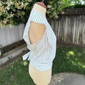 Guess White & Black Stripped Sleeveless Flutter Faux Wrap Blouse Top Women's L