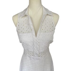 Guess White Eyelet Lace Cutout Sleeveless Summer Fit and Flair Cotton Dress Sz 6