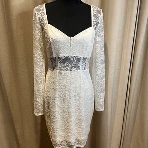 Guess White Lace Long Sleeve Bodycon Dress Size L