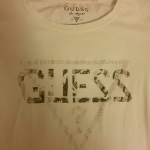 Guess White Rhinestone Shirt