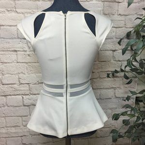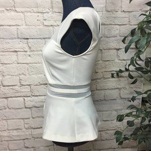 This peplum flare style white top is very stretchable, runs small, very elegant, never worn.