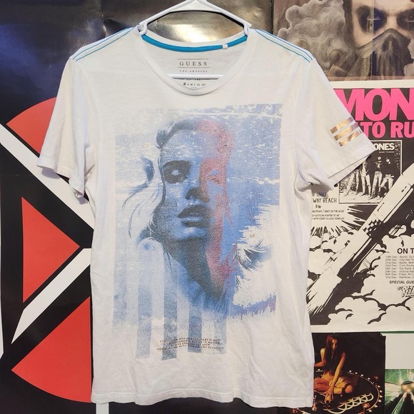 Guess White and Blue Graphic Tee