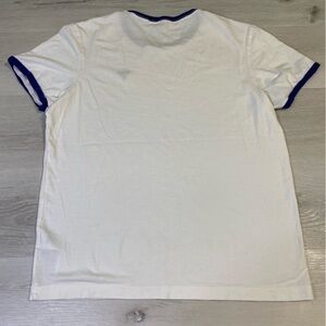 Guess White/Navy Ringer Retro Embroidered Logo T-Shirt, size L