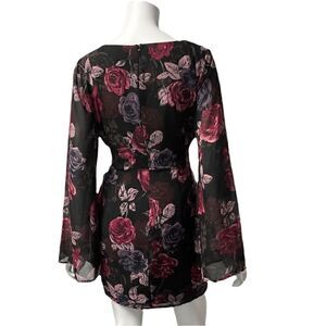 Guess Wide Long Sleeve V Neck Floral Mini Dresd