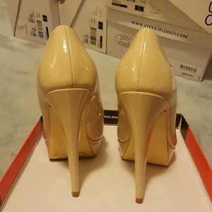 Guess Winna Women's Size 7 Beige/Nude Shiny Patent Rounded-Toed Platform Stiletto Pumps (5" High) in Used, Good Condition (with box)