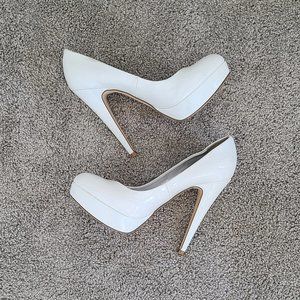 Guess Winna Women's Size 7 White Shiny Patent Rounded-Toed Platform Stiletto Pumps (5" High) in Used, Good Condition (with box)