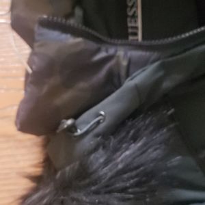 Beautiful winter jacket . Deep dark green . Detachable fur around hood . Lots of pockets. See photos. Worn nay be twice .