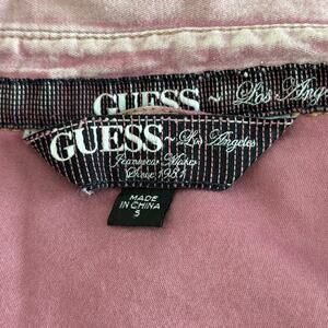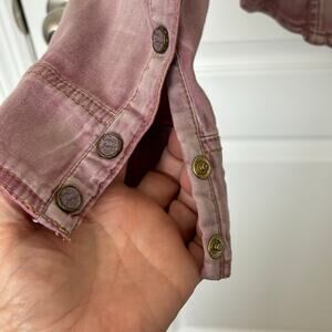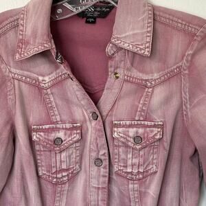 Guess Wms Small LS Distressed Snap Front Pink Shirt Jacket Cinch Waist Grunge