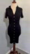 Sleek black dress with ribbed texture. Features a button-front design. Perfect for versatile styling.