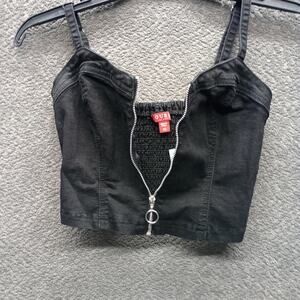 Guess Women Bustier Zip Front Sleeveless Cotton Top