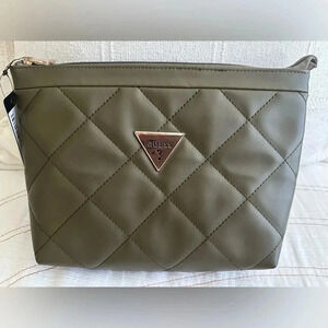 Guess Women Quilted Logo Clutch Bag Faux Leather Olive Kingsport Travel - NWT
