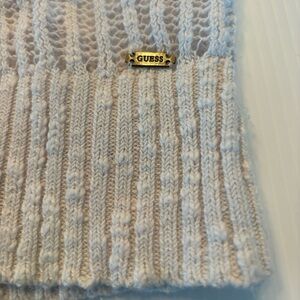 A perfect Spring and Summer sweater to wear while running errands, hanging at the beach or lunching with friends. Open knit white v-neck sweater with 3/4” sleeves, size small by Guess. Good pre-owned condition.
