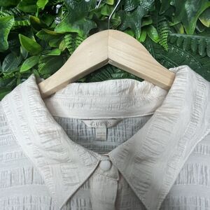 Guess Women Tops XL Beige Crinkle Blouse Collar Long Sleeve MSRP$89.00 NWT 0201